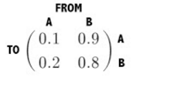 Each arrow corresponds to the proportion of a node that is being transferred to another node (each entry will be ≤1).